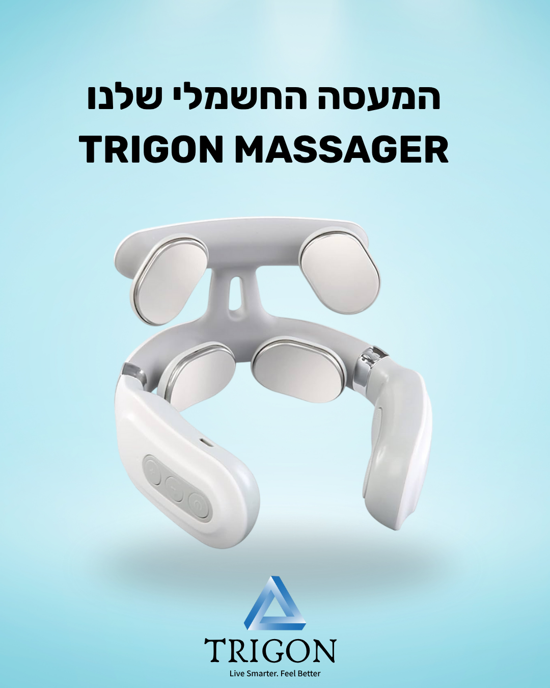 מכשיר עיסוי לצוואר של חברת טריגון בטכנולוגיית חימום ורטט - להקלה מיידית על מתח וכאב